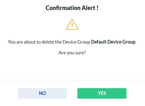 To delete a Device Group, click the Delete icon in the Actions column. A confirmation dialog will appear. Click Yes to permanently delete the selected Device Group, or No to cancel the action.
