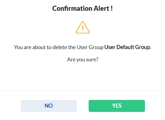 To delete a User Group, click the Delete icon in the Actions column. A confirmation dialog will appear. Click Yes to permanently delete the selected User Group, or No to cancel the action.