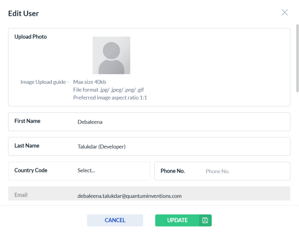 • Easily locate a admin user using the search functionality by entering the Admin User Name, Email, Phone Number, or Country Code.