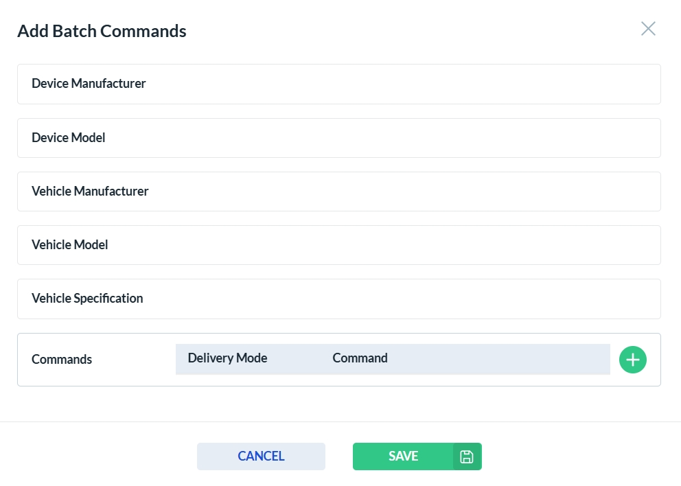 To add a new Batch Command, click the Add New button. This will open the Batch Command form. Complete all required fields, then click Save to store the new Batch Command or Cancel to discard your changes.