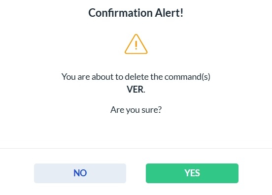 To delete a Batch Command, click the Delete icon in the Actions column. A confirmation dialog will appear. Click Yes to permanently delete the selected Batch Command, or No to cancel the action.
