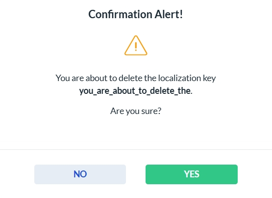 To delete a Localization, click the Delete icon in the Actions column. A confirmation dialog will appear. Click Yes to permanently delete the selected Localization, or No to cancel the action.