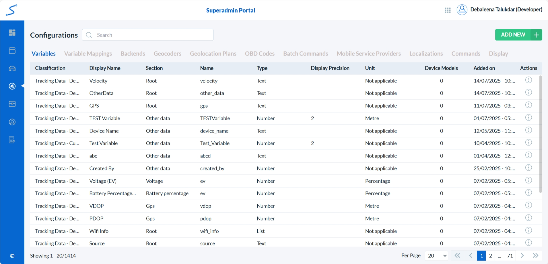 After logging into the Super Admin Portal, select Configurations from the left navigation panel. This page displays a list of all variables along with their details.